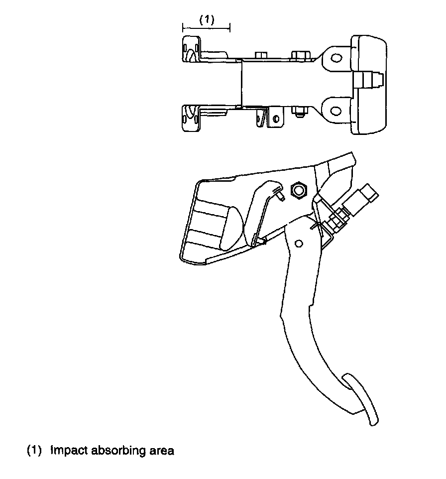 In case of a front collision, the brake pedal bracket impact absorbing area deforms to minimize shock to the driver.