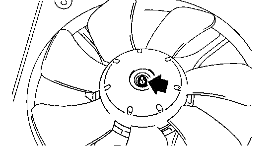 2. Remove the nut which holds fan itself onto fan motor and shroud assembly.