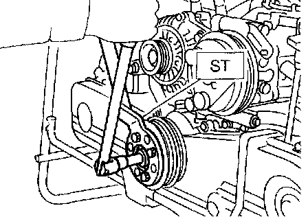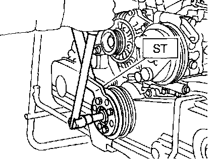 2. Remove the crankshaft pulley bolt. To lock the crankshaft, use ST.
