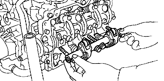 3. Remove the nut and adjuster screw from valve rocker.
