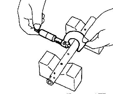 1. Measure the inside diameter of valve rocker arm and outside diameter of valve rocker shaft, and determine the difference between the two (= oil clearance).