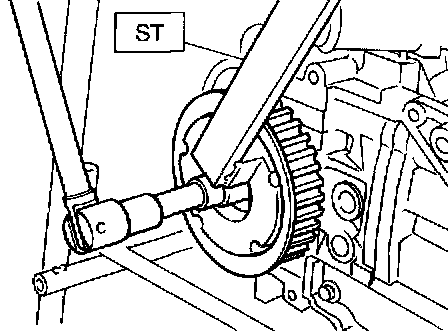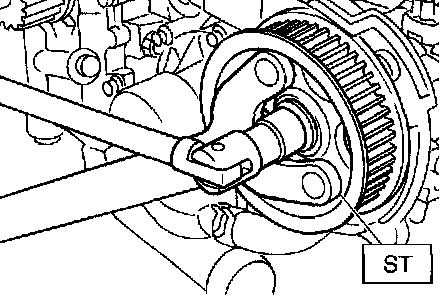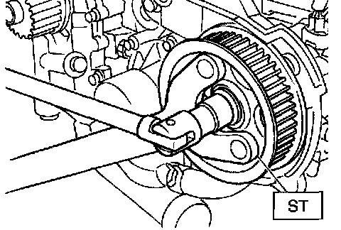 6. Remove the camshaft sprocket No. 2. To lock the camshaft, use ST.