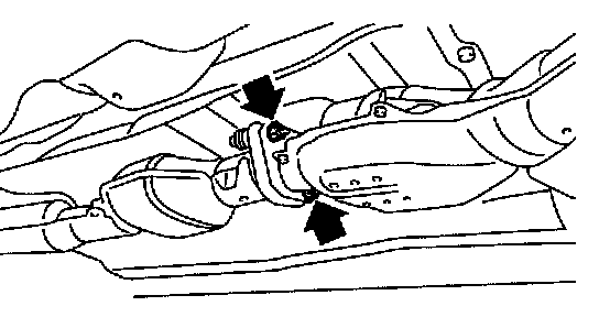 7. Tighten the bolts which install front and center exhaust pipe assembly to rear exhaust pipe.