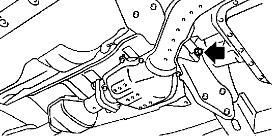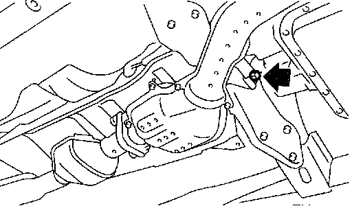 8. Remove the bolt which installs front and center exhaust pipe assembly to hanger bracket.