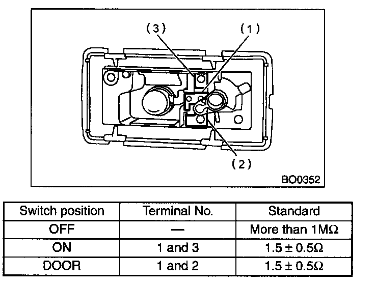 Measure the luggage room light switch resistance.