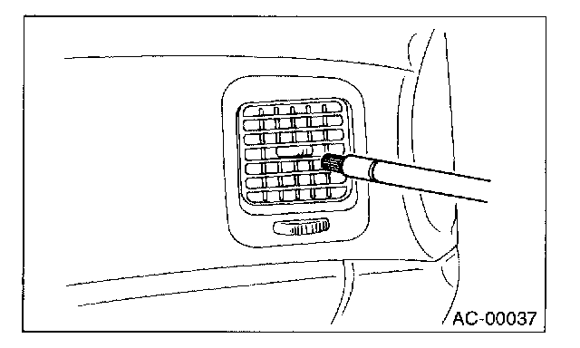 11. Turn the ignition key to ON position, and run the blower at high speed for 1 minute. Stop the blower to check the ventilation grille on the instrument panel. While moving the tester closer to the grille, run the blower for 1 or 2 seconds, then stop it. Check the grille at that point for at least 10 seconds.