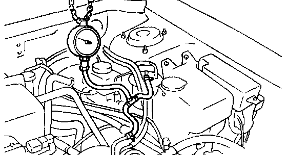 6. Measure the fuel pressure while disconnecting the pressure regulator vacuum hose from intake manifold.