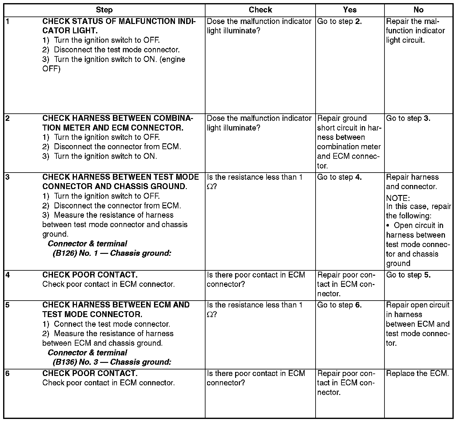 - The malfunction indicator light circuit is open or shorted.
