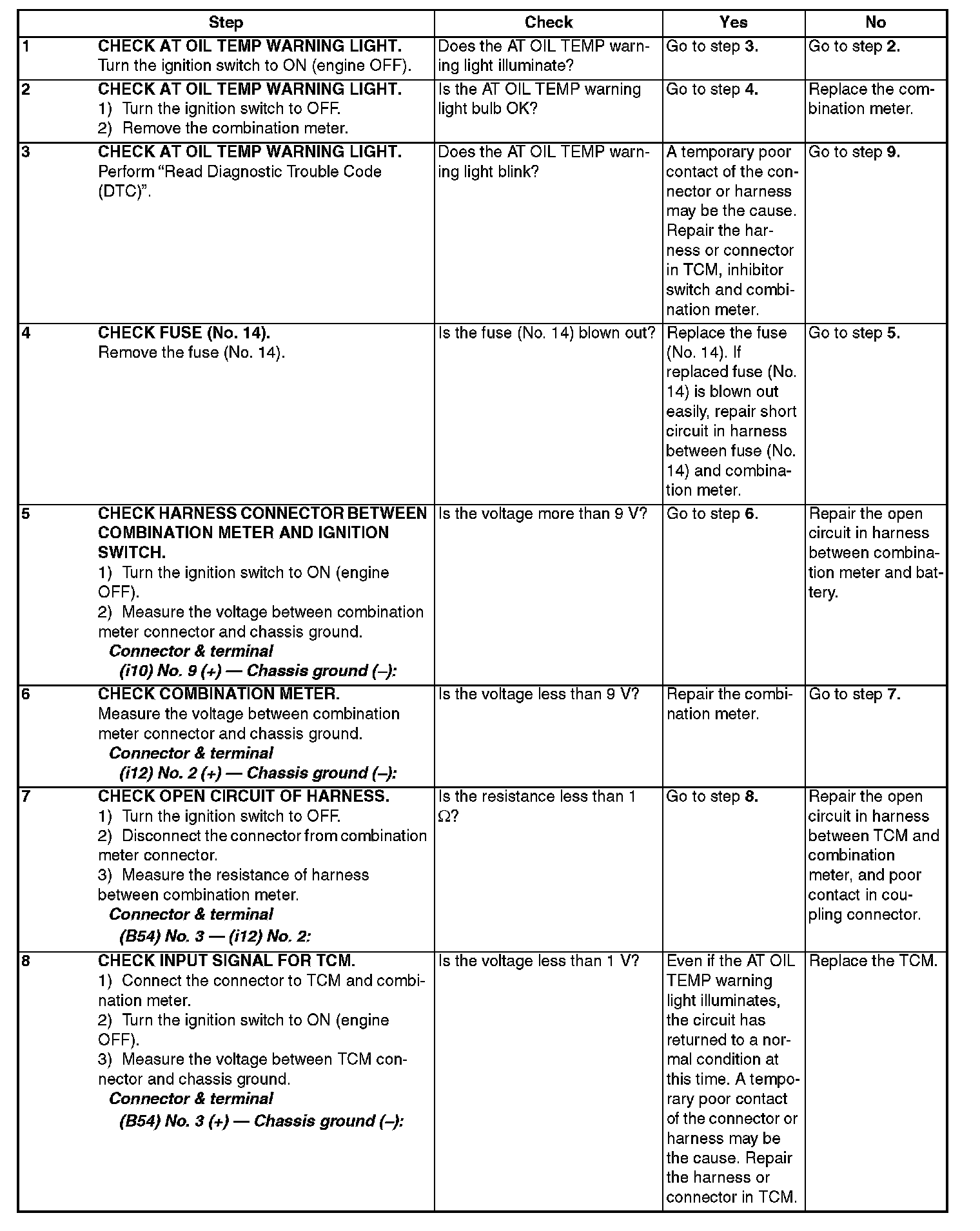 Diagnostic Procedure For AT Oil Temp Warning Light