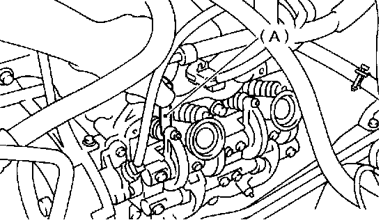 NOTE: When arrow mark (A) on the camshaft sprocket (LH) comes exactly to the top, #1 cylinder piston is brought to the top dead center of compression stroke.