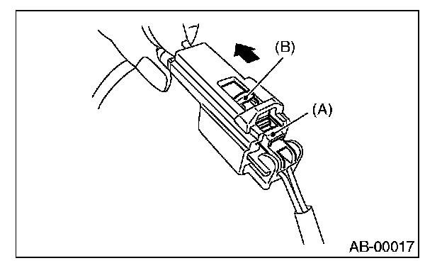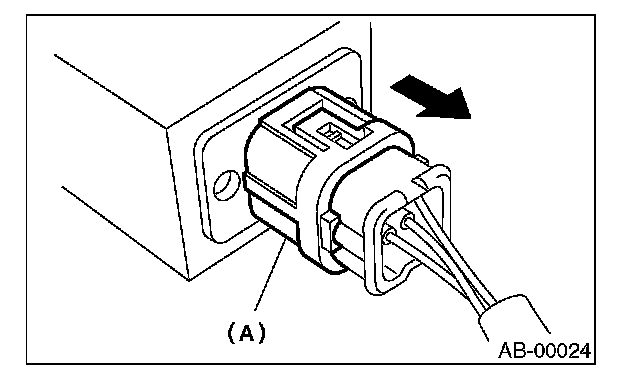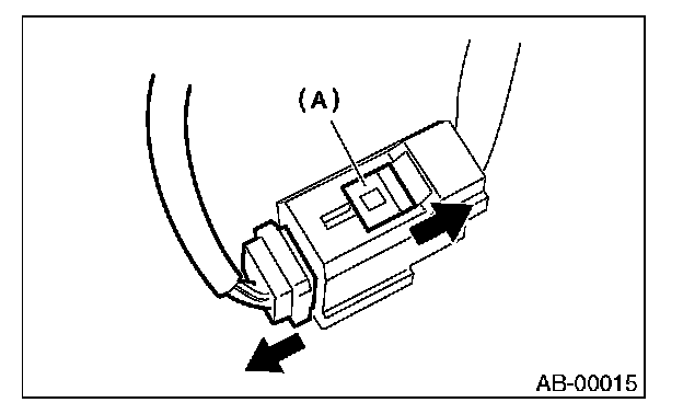 2. With the lock arm (A) pushed in, pull the connector in the direction of arrow, and then disconnect the connector.