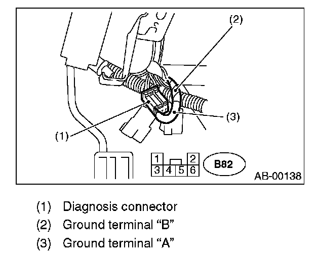 2. Connect the ground terminal (ground terminal "A") to diagnosis connector terminal No. 1 in the instrument panel lower cover area.