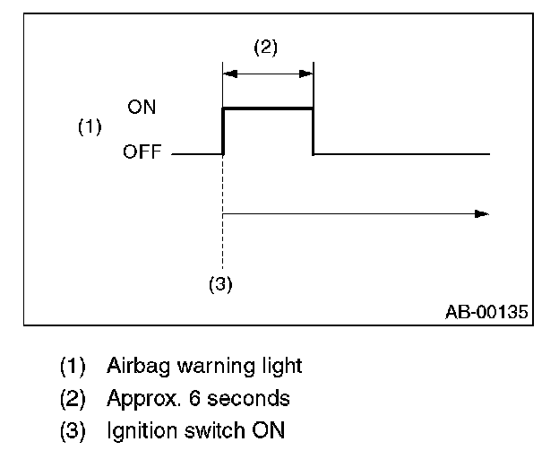 Keep the ignition switch to ON, and confirm that the airbag warning light remains off after being turned on for approx.