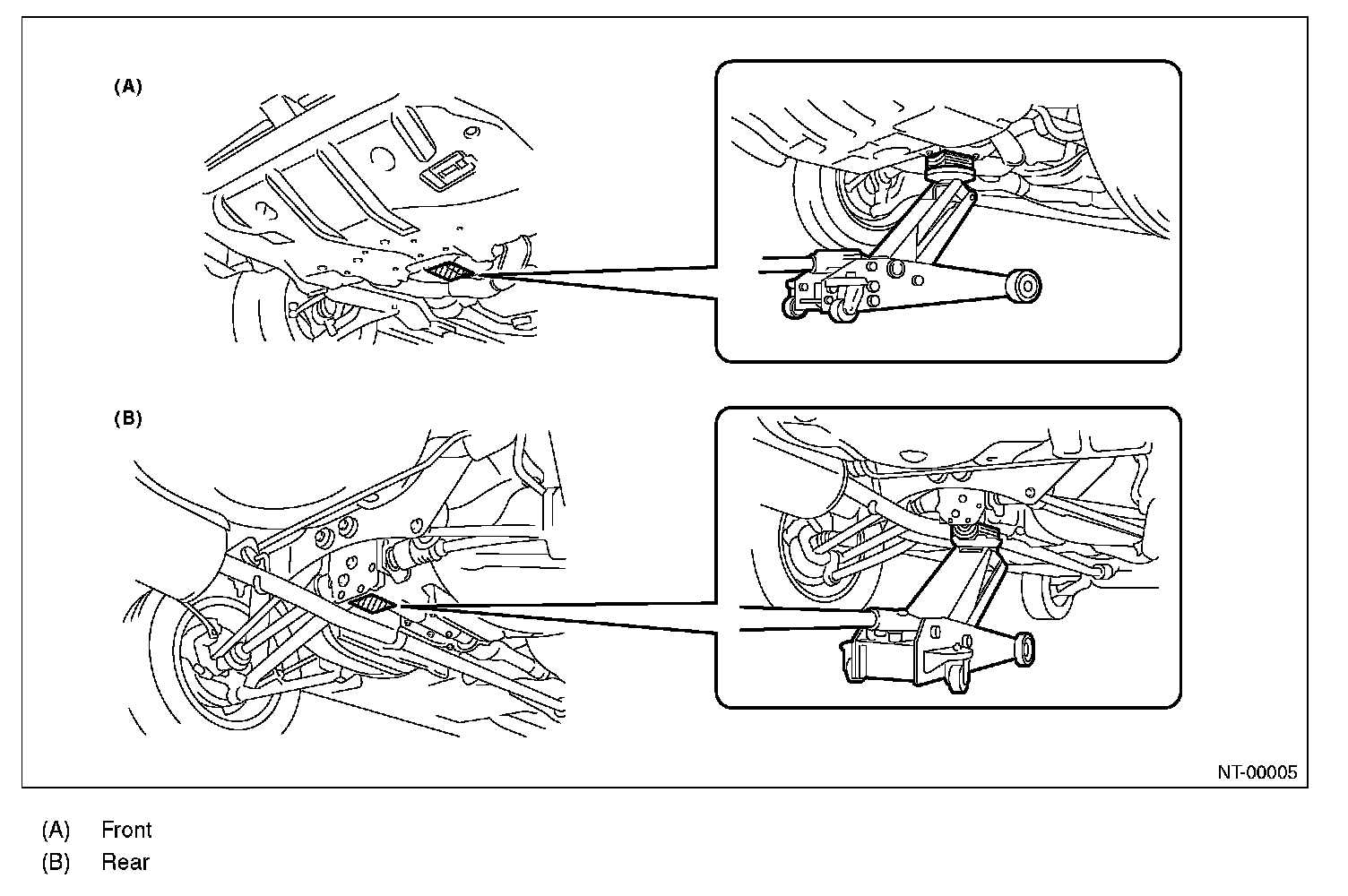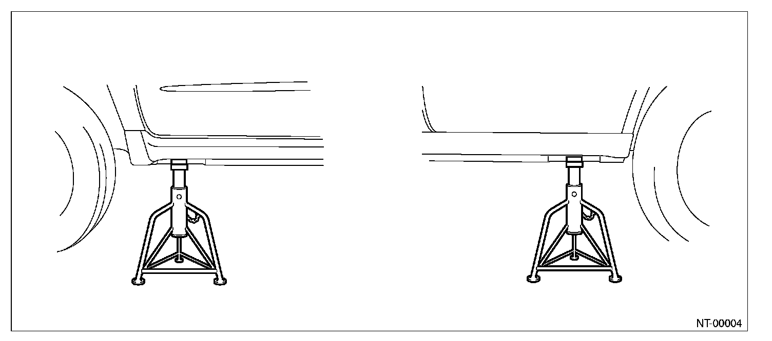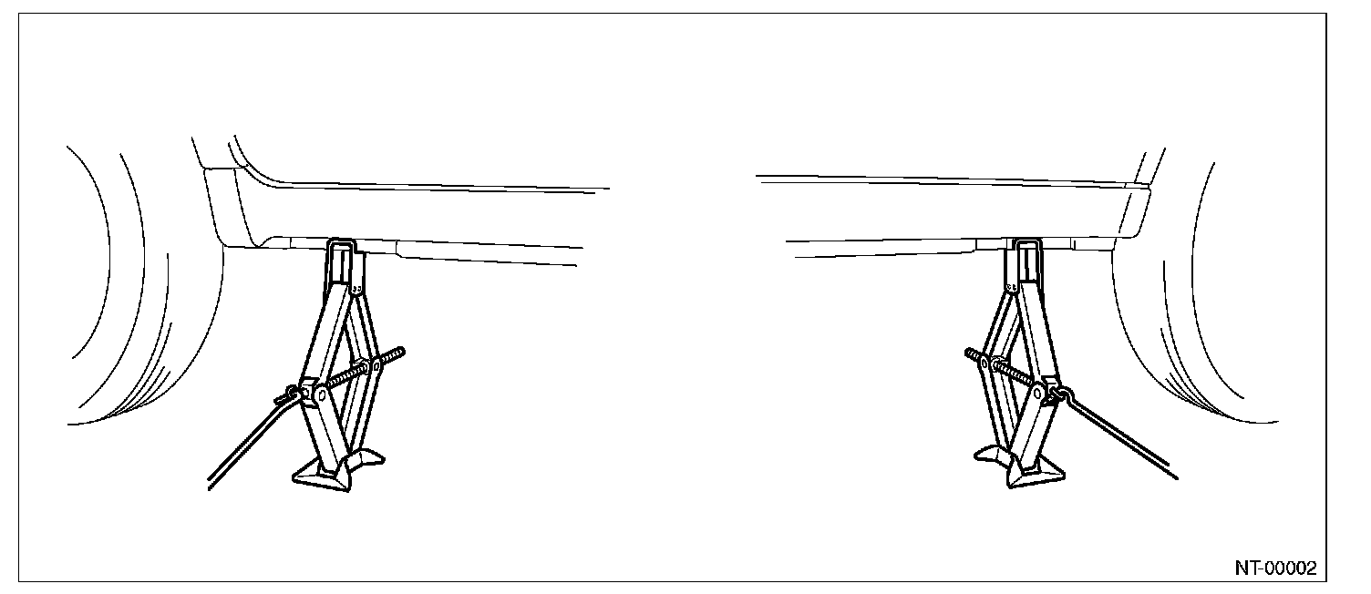 Be sure to set the wheel stoppers when jacking-up only the front or rear of the vehicle.
