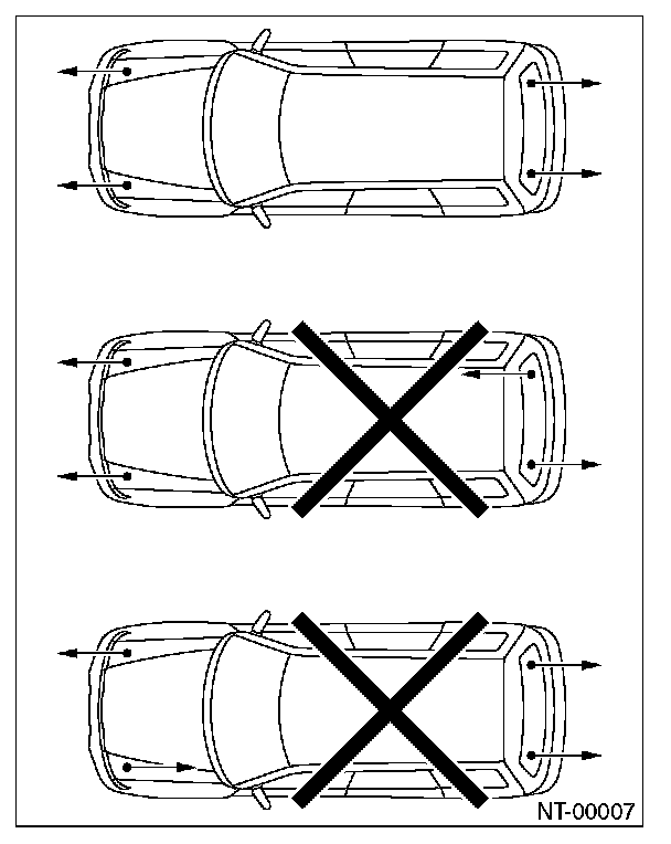 When using a lift or jack to raise a vehicle, always follow instructions concerning jack-up points and weight limits to prevent the vehicle from falling, which could result in injury. Be especially careful to make sure the vehicle is balanced before raising it.