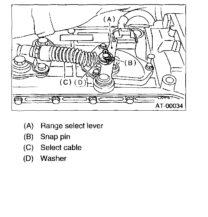 5. Install the select cable to range select lever.