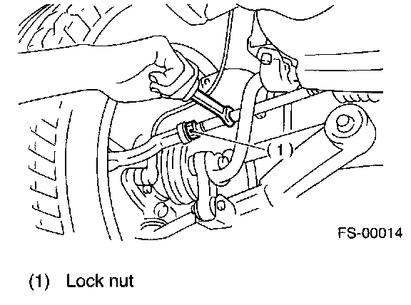 2) When one rear wheel is adjusted in a toe-in direction, adjust the other rear wheel equally in toe-out direction, in order to make thrust angle adjustment.