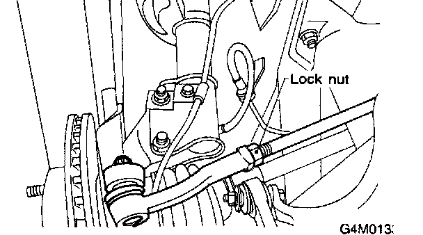 4) If the steering wheel spokes are not horizontal with vehicle set in the straight ahead position after this adjustment, correct it by turning the right and left tie-rods in opposite direction by same angle.