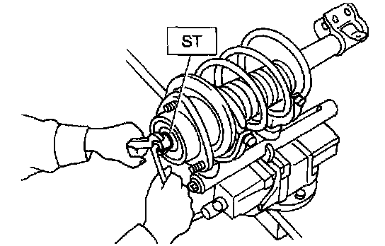 1) Before installing the coil spring, strut mount, etc., on the strut, check for the presence of air in the damping force generating mechanism of the strut since air prevents proper damping force from being produced.