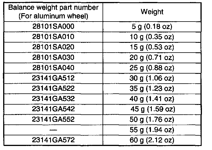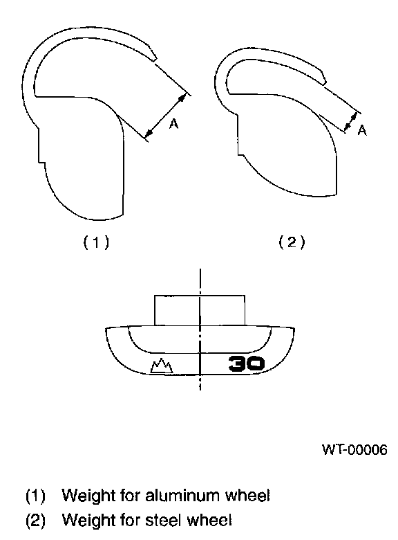 3) Some types of balancer can cause damage to the wheel. Use an appropriate balancer when adjusting the wheel balance.