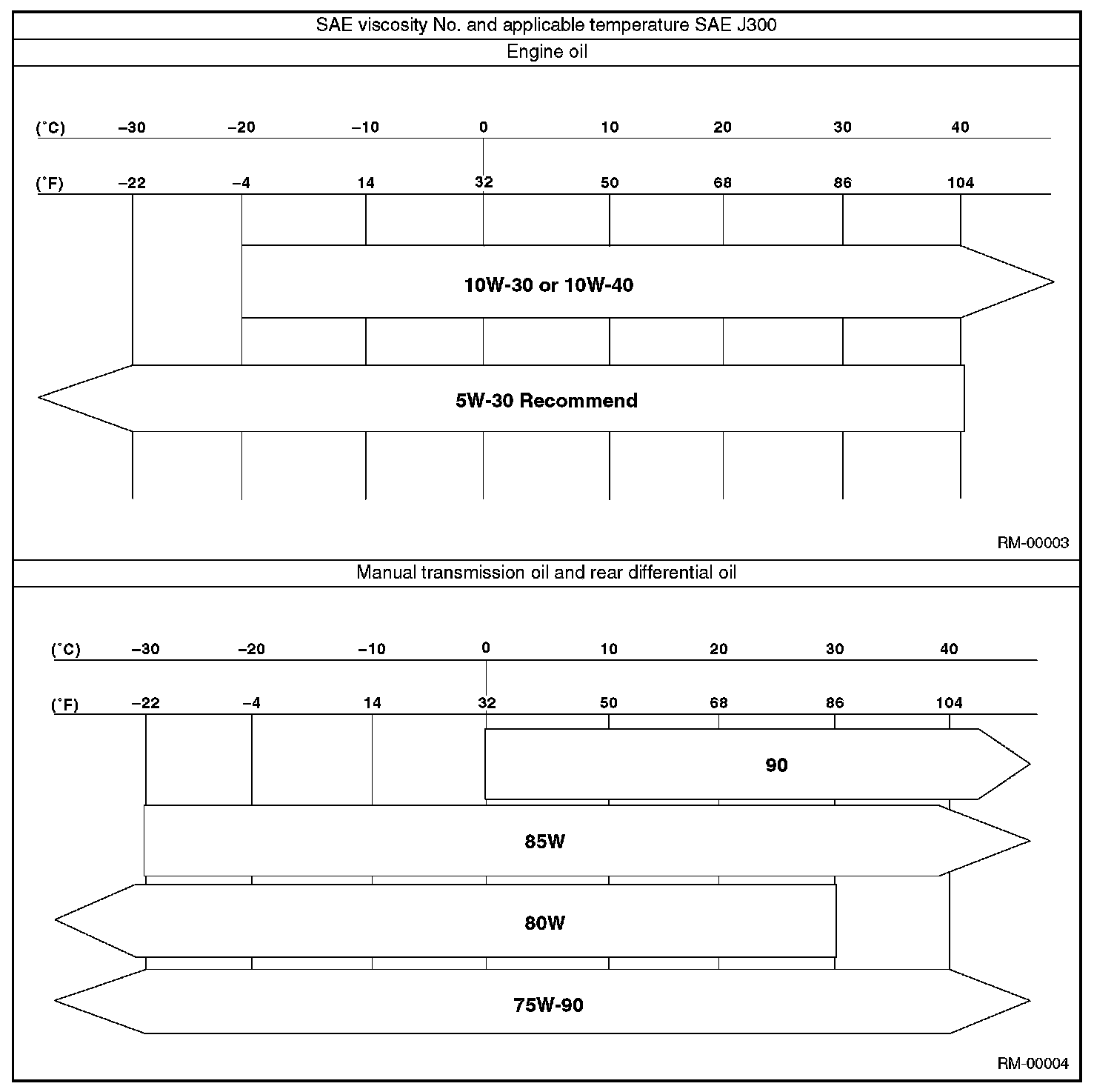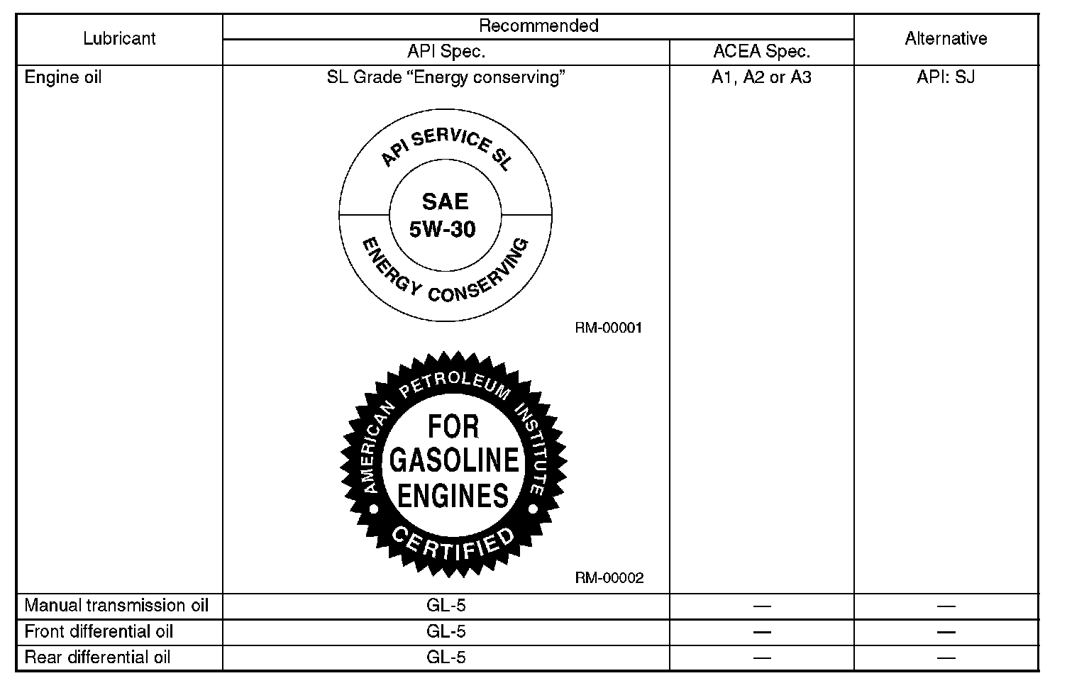 Use either the lubricants in the table or equivalent lubricants. See the table to choose the correct SAE viscosity.