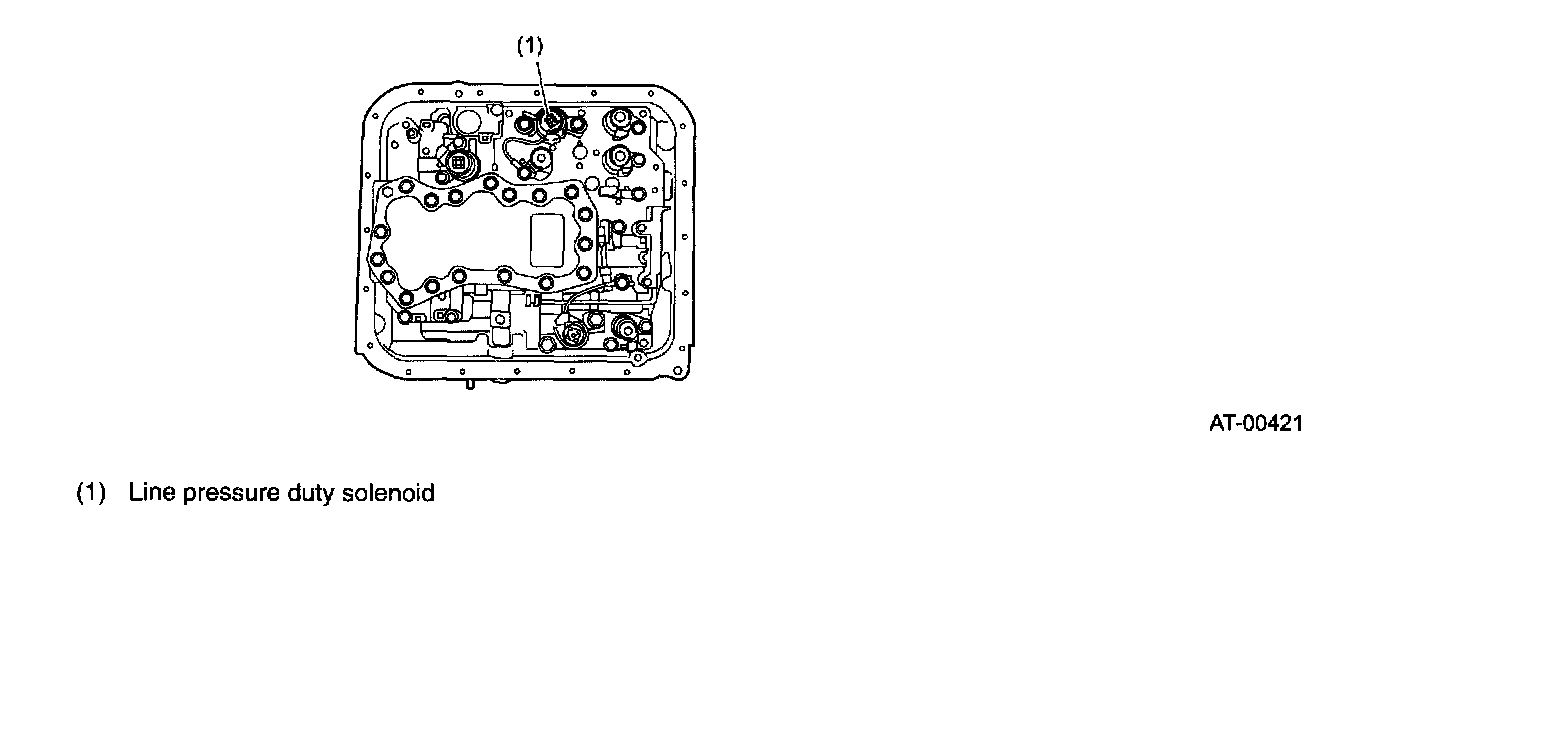 This solenoid is mounted on the transmission hydraulic control valve body. Its duty ratio is controlled by signals from the TCM. This solenoid then controls the pressure modifier valve and accumulator control valve A to adjust the line pressure to an optimum pressure level suitable for operating conditions.