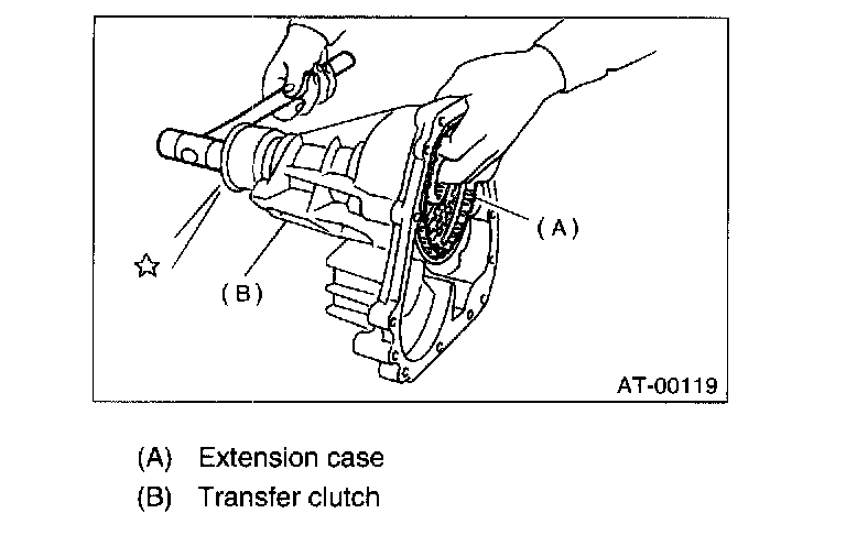 1. Take out the transfer clutch by lightly tapping the end of the rear drive shaft.