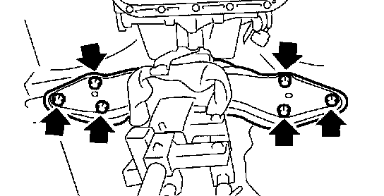 NOTE: Make sure that the support plates of transmission jack don't touch the crossmember.