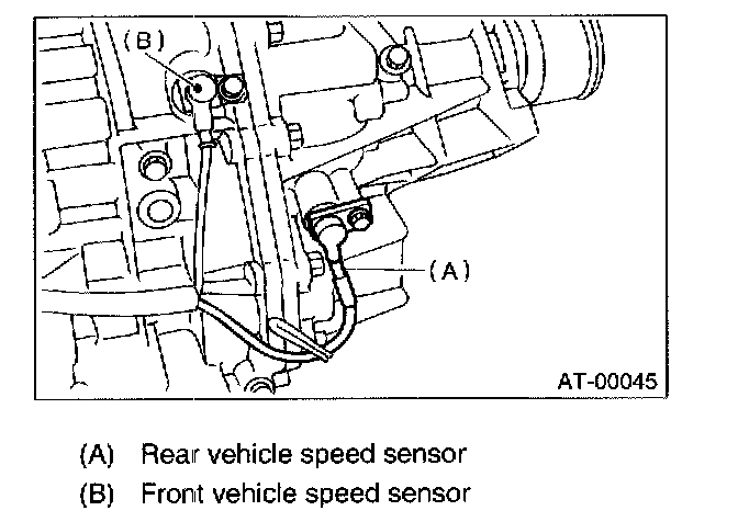 6. Install the front and rear vehicle speed sensor, and also the torque converter turbine speed sensor, and then fasten the harness.