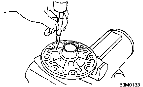 20. When replacing the bearings, hit out the front bearing cup and rear bearing cup in this order out of case by using a brass bar.