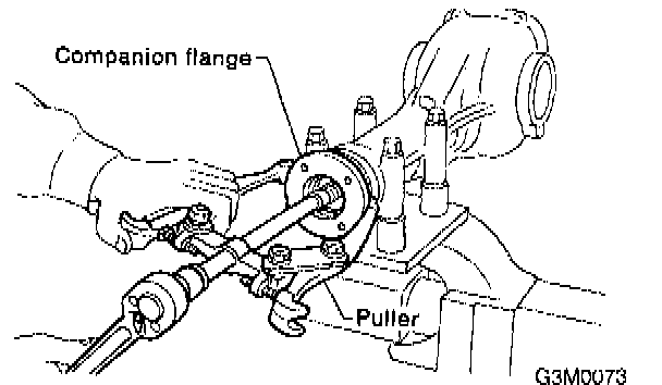 14. Hold the companion flange with ST and remove the drive pinion nut.