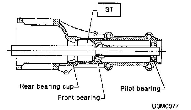 19. Remove the pilot bearing together with front bearing cone using ST.