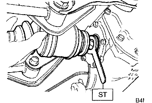 8. Using the ST1 and ST2, pull the rear drive shaft into place.