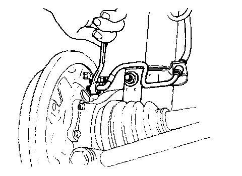 8. Using a flare-nut wrench, disconnect the brake hose from wheel cylinder. Cover the open end of wheel cylinder to prevent entry of foreign particles.