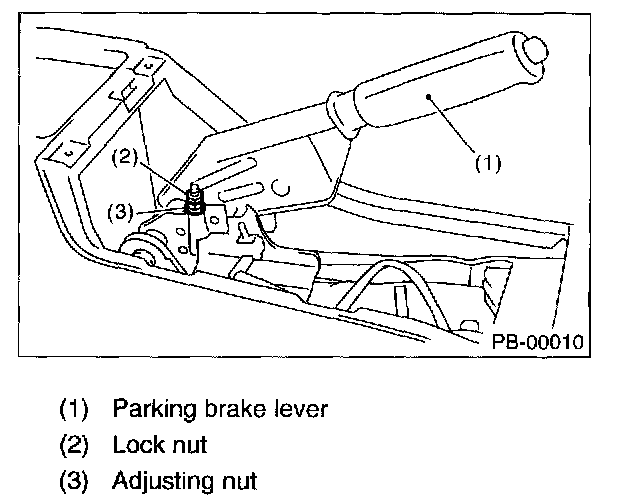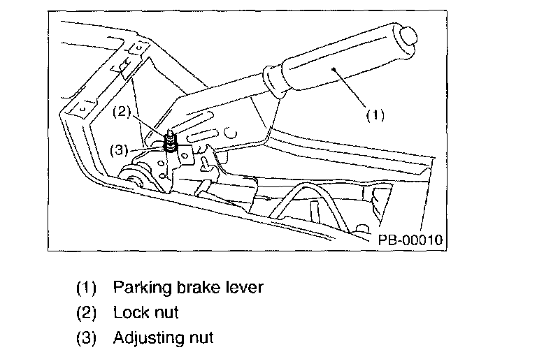 5. Return the parking brake lever and loosen adjusting nut.