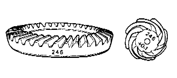2. Alignment marks/numbers on hypoid gear set: The upper number on driven pinion is the match number for combining it with hypoid driven gear. The lower number is for shim adjustment. If no lower number is shown, the value is zero. The number on hypoid driven gear indicates a number for combination with drive pinion.