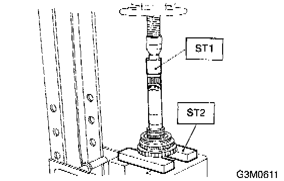 2. Using the ST1, ST2 and ST3, tighten the lock nut to specified torque.