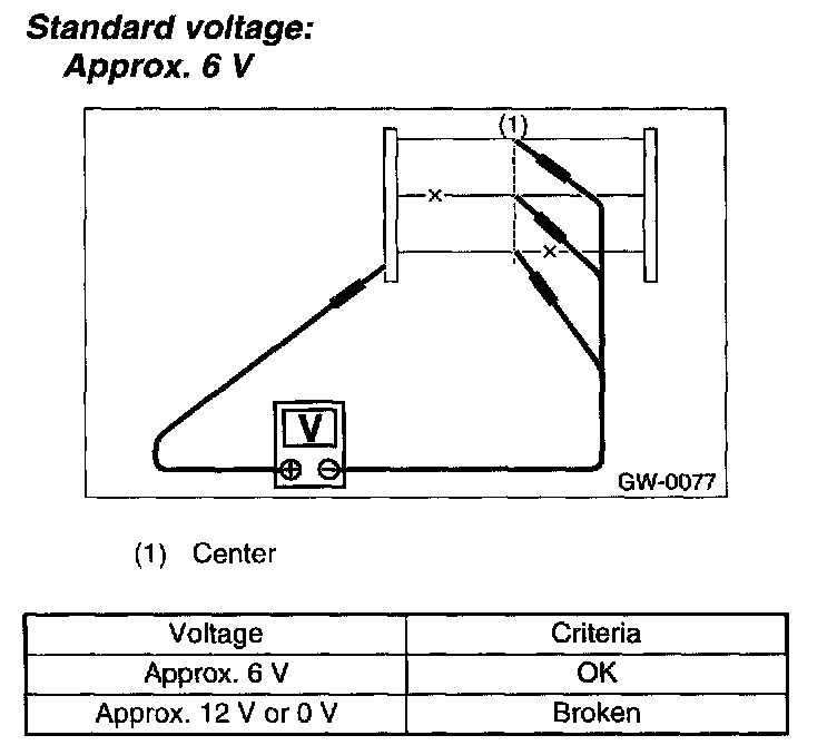 - If the measured value is 12 volts, heat wire is open between wire center and positive (+) end.