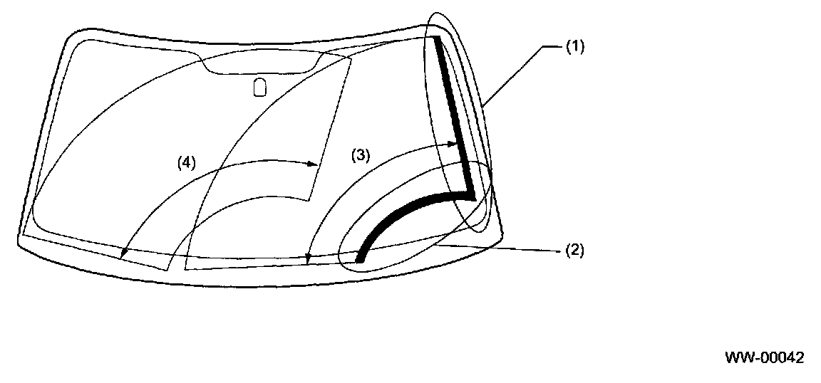 5. The driver's side wiper blade is elongated by 25 mm (1 in) to reduce the not wiped area at the bottom of the windshield. Also, the rigidity of the wiper assembly is increased by modularizing the wiper system and this contributes to reducing the not wiped area near the front pillar.