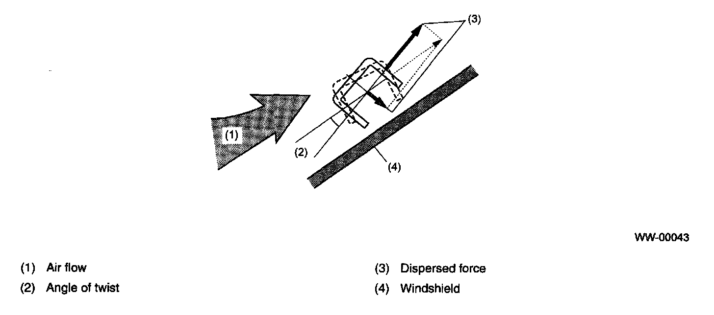 6. The driver's side wiper arm is angled to disperse the force applied to the wiper arm by the air flow. A part of the dispersed force acts to press the wiper blade against the windshield helping to prevent the wiper blade being lifted up.