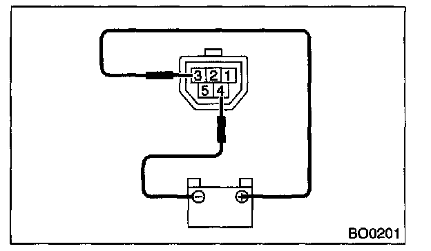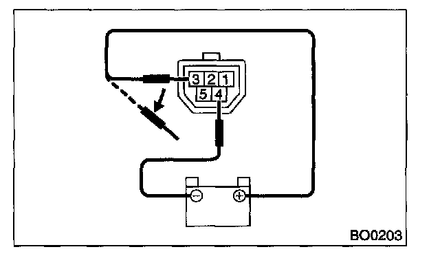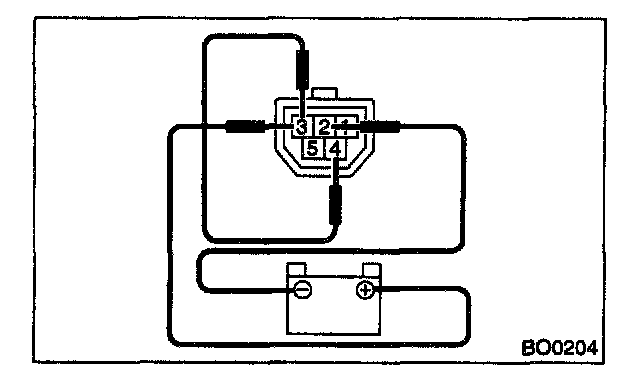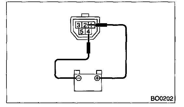 3. Connect the battery to terminals of connector, and remove the terminal connection with motor rotated at low speed, and stop the wiper motor through operation.