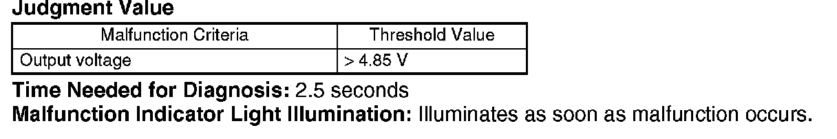 Judge NG when the continuous time until completing the malfunction criteria becomes more than the time (2.5 seconds) needed for diagnosis. Judge fail safe NG when the continuous time until completing the malfunction criteria becomes more than the time (0.1 seconds) needed for diagnosis. Judge OK and clear the NG when the malfunction criteria are not completed.