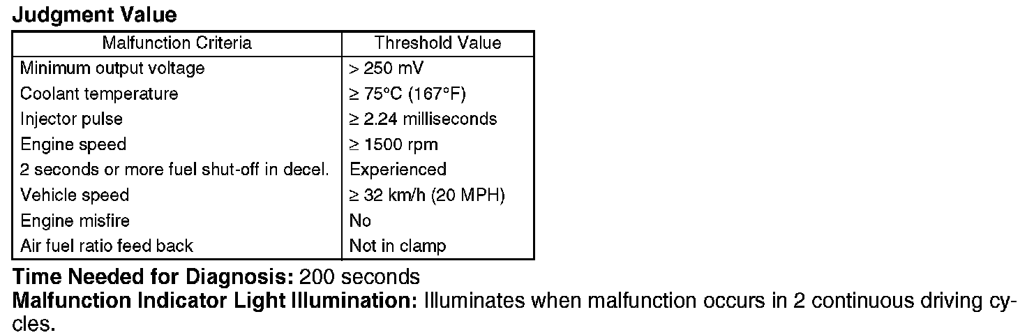Detect the open or short circuit of rear oxygen sensor. Judge NG when out of the standard value.