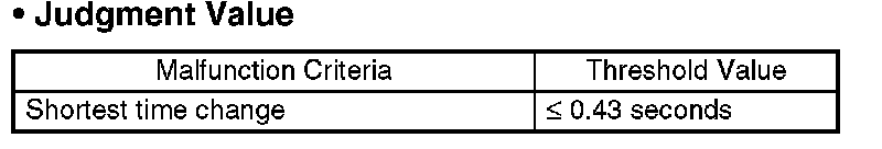 When the rear oxygen sensor output voltage changes from 0.5 V (rich) to 0.15 V (lean), carry out calculation regarding the response time of the output change from 0.45 V to 0.2 V as diagnostic value. When the rear oxygen sensor output voltage does not change from 0.5 V to 0.15 V, do not carry out calculation even if the output changes from 0.45 V to 0.2 V.