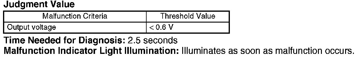 Judge NG when the continuous time until completing the malfunction criteria becomes more than the time (2.5 seconds) needed for diagnosis. Judge OK when the malfunction criteria are not completed.