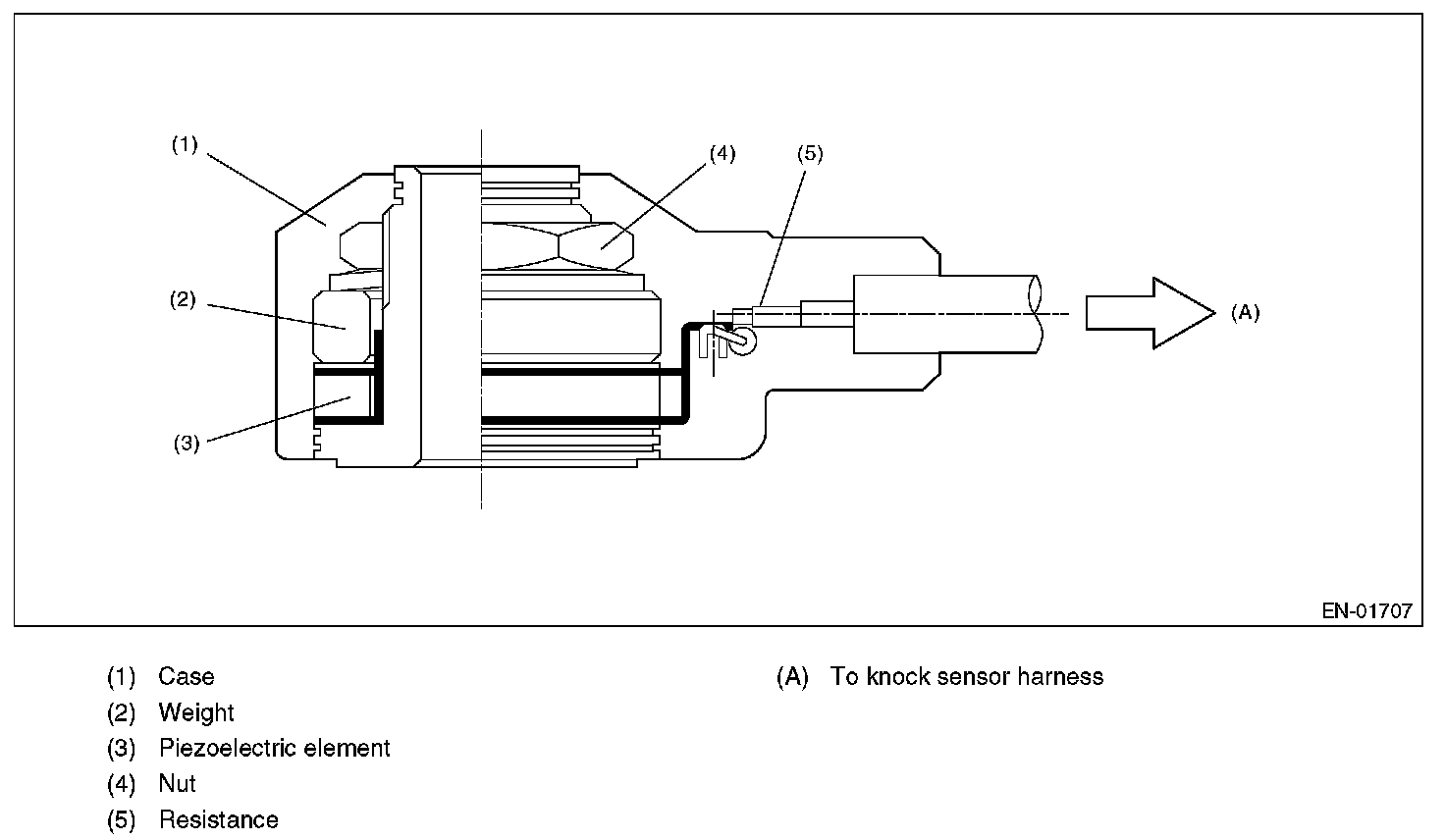 Detect the open or short circuit of knock sensor. Judge NG when out of the standard value.
