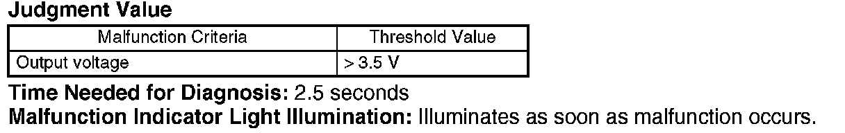 Judge NG when the continuous time of completing the malfunction criteria becomes more than the time (2.5 seconds) needed for diagnosis. Judge OK when the malfunction criteria are not completed.