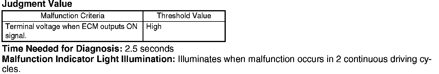Judge NG when the continuous time until completing the malfunction criteria become more than time (2.5 seconds) needed for diagnosis.