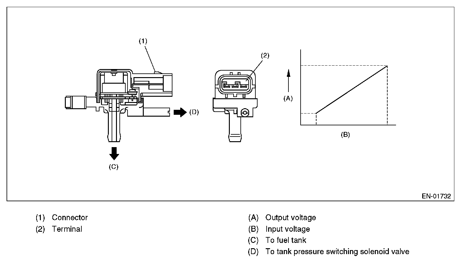 Detect the open or short circuit of tank pressure sensor. Judge NG when out of the standard value.