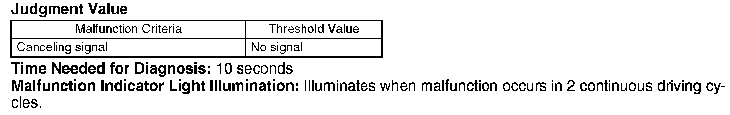 Judge NG when the vehicle speed is less than 20 km/h (12 MPH) and cruise control set signal remains ON for limited time.